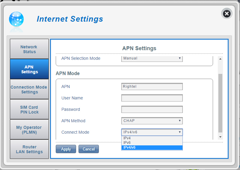 After applying the settings, click Apply. After rebooting the device, you can use IPv6.