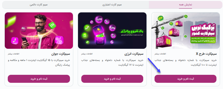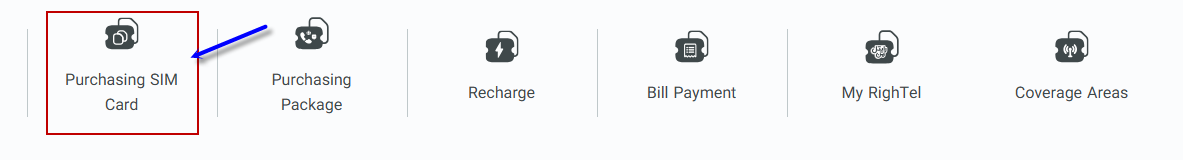 1- After entering the website, click on the “purchasing SIM Card” option.