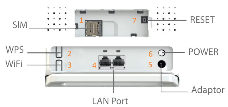 ابتدا به روش بالا سیمکارت را در محل مشخص شده قرار داده، سپس آنتنهای دستگاه را مطابق شکل در محلهای مشخص شده نصب نمایید. سپس آداپتور دستگاه را به برق متصل کرده و فیش آن را به دستگاه متصل نمایید. در آخر با فشردن کلید Power دستگاه را روشن نمایید. دستگاه به سرعت بارگذاری شده و آماده استفاده با تنظیمات پیشفرض خواهد بود. (نام کاربری و رمز عبور مورد نیاز برای اتصال به وای فای دستگاه، در زیر بدنه دستگاه درج شده است.)