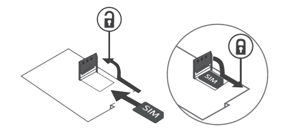 - ابتدا درپوش پشت مودم را باز کنید. سپس سیمکارت سایز میکرو را در محل مشخص شده قرار دهید. جایگاه سیمکارت به گونه ای است که نگهدارنده آن دارای قفل با قابلیت حرکت افقی است.