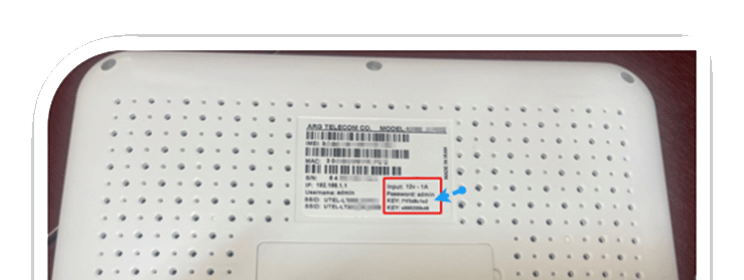 مطابق تصویر ذیل،SSID و Password های مورد نیاز برای اتصال به وایفای دستگاه از برچسب الصاق شده به بدنه مودم قابل مشاهده است.